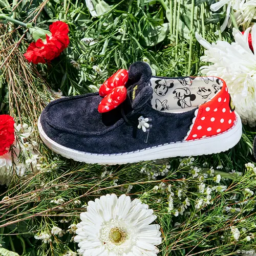Everyone’s favorite sweetheart is now on a HEYDUDE™ shoe. The Wendy Funk Minnie has you Disney-decked from bows to toes. Featuring Minnie’s signature polka dot pattern, a Minnie hand lace cover, Minnie ears and black and white Minnie head print lining; this shoe is so cute it will make you blush. Perfect for Disney lovers of all ages.